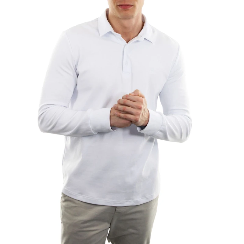 Polo Camisero Pique Manga Larga Blanco para Hombre